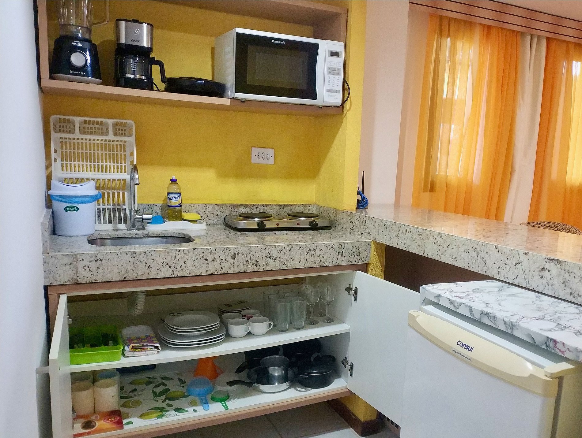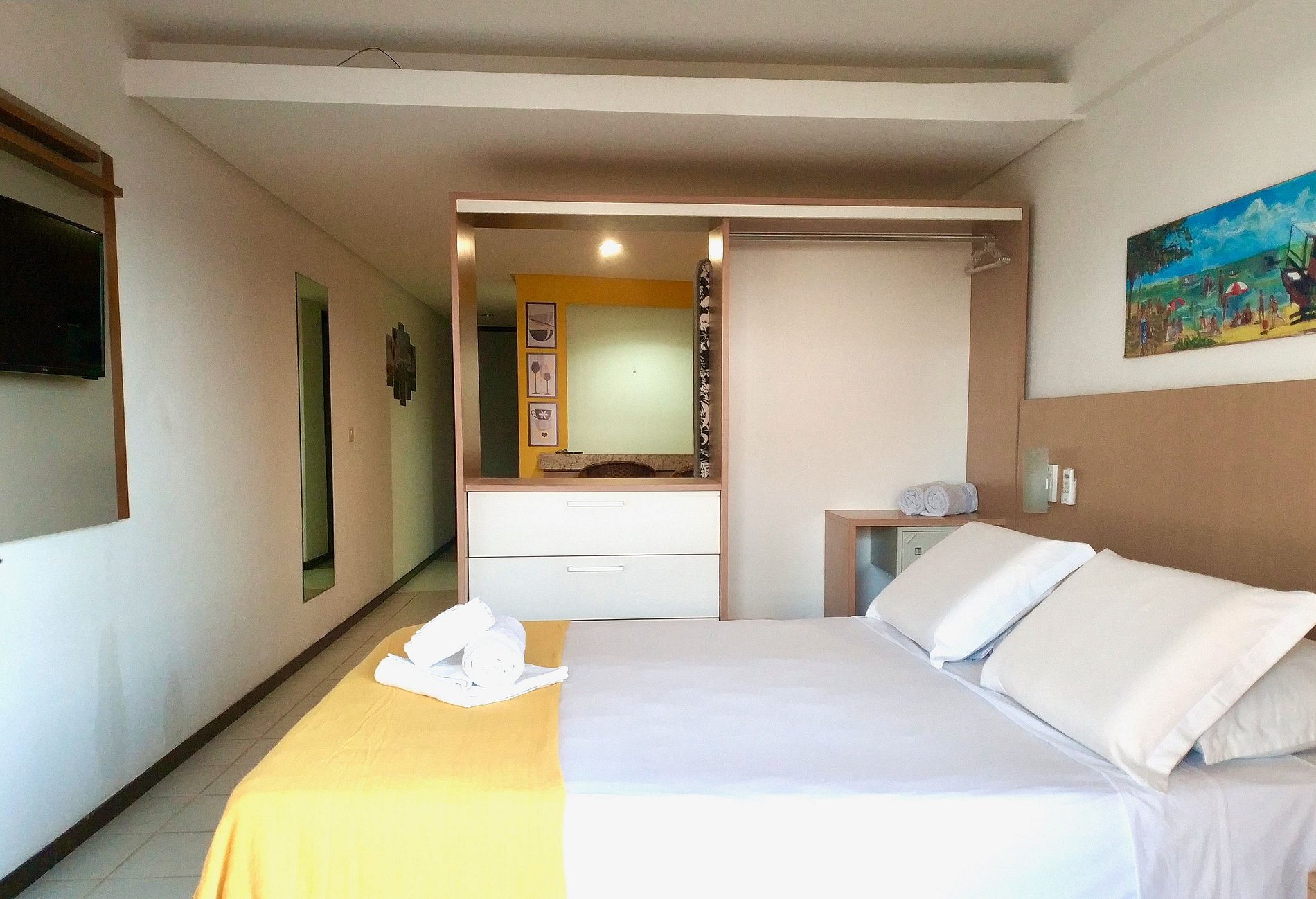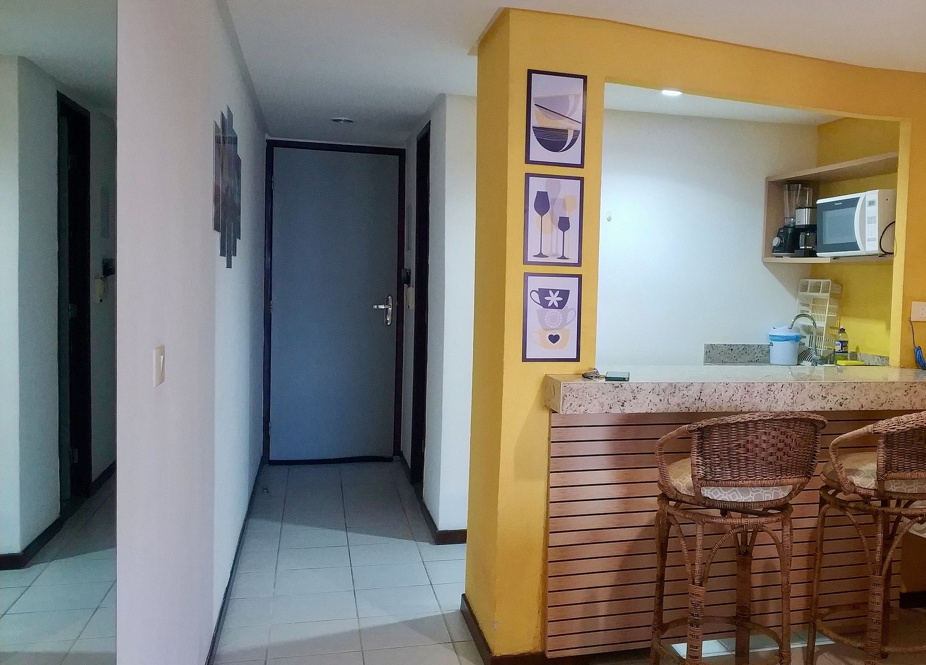 Our flat in the Pipa's Ocean condominium is very cozy, just a step away from the beach and a short distance from the effervescent village centre, where are the pubs, charming shops and restaurants for all tastes. We have thought in everything to make your stay comfortable. We offer bed and bath linen, kitchenette equipped with 2-burner electric stove, mini fridge, blender, microwave, toaster, plates, cutlery, glasses, bowls, etc... You are very welcome, come and feel like home.