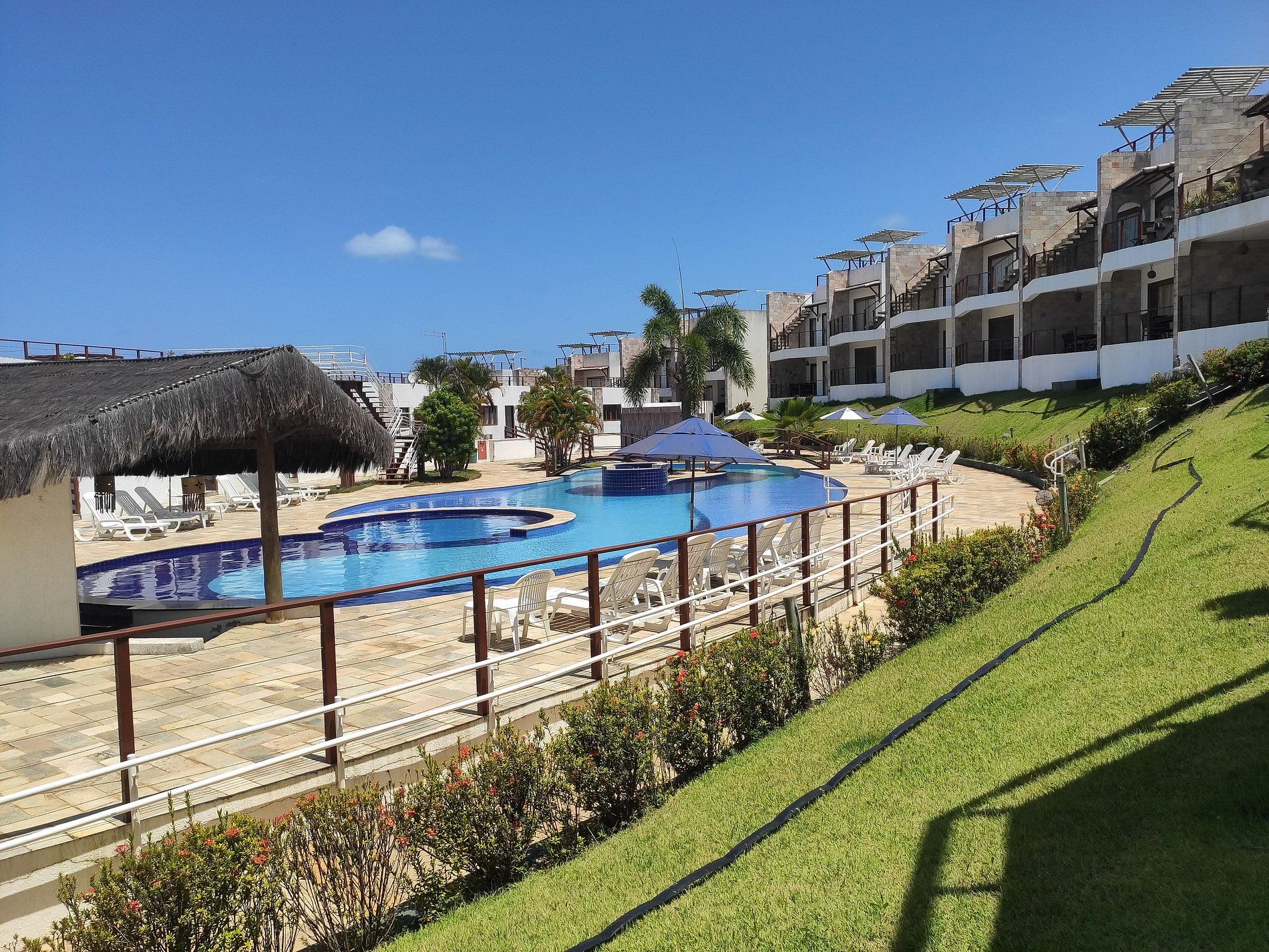 Brisas do Amor is a mixed-use, residential x tourist condominium, located nearby Praia do Amor, Praia das Minas and Chapadão. The condominium consists of 84 apartments arranged on 2 floors. Ground floor apartments can overlook the pool or garden. Apartments on the roof top have a terrace with a hot tub (not heated). From the terrace all units have a sea view and an incredible sunset view. Depending on the layout of the chosen apartment, the view from the balcony is different, and can be of the parking lot, garden, swimming pool or sea. The condominium has rotating indoor parking, 24-hour security and reception, wifi in common areas, swimming pools and jacuzzi spa (to use the jacuzzi spa there is an extra cost and the appointment must be made directly at the building's reception). Within a distance of 400 meters you can find all the facilities for a comfortable stay, such as: restaurants, bakery, supermarket, fishmonger, greengrocer, bars, beach access, public transport, taxi stop, pharmacy, etc. The night center of Pipa is 800 meters away (walking distance).