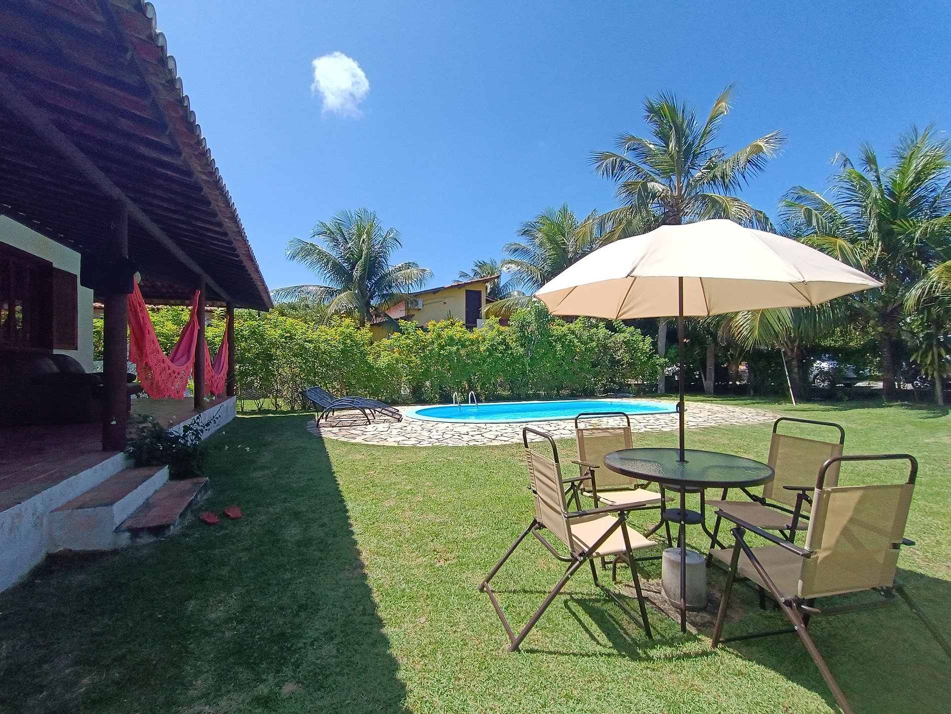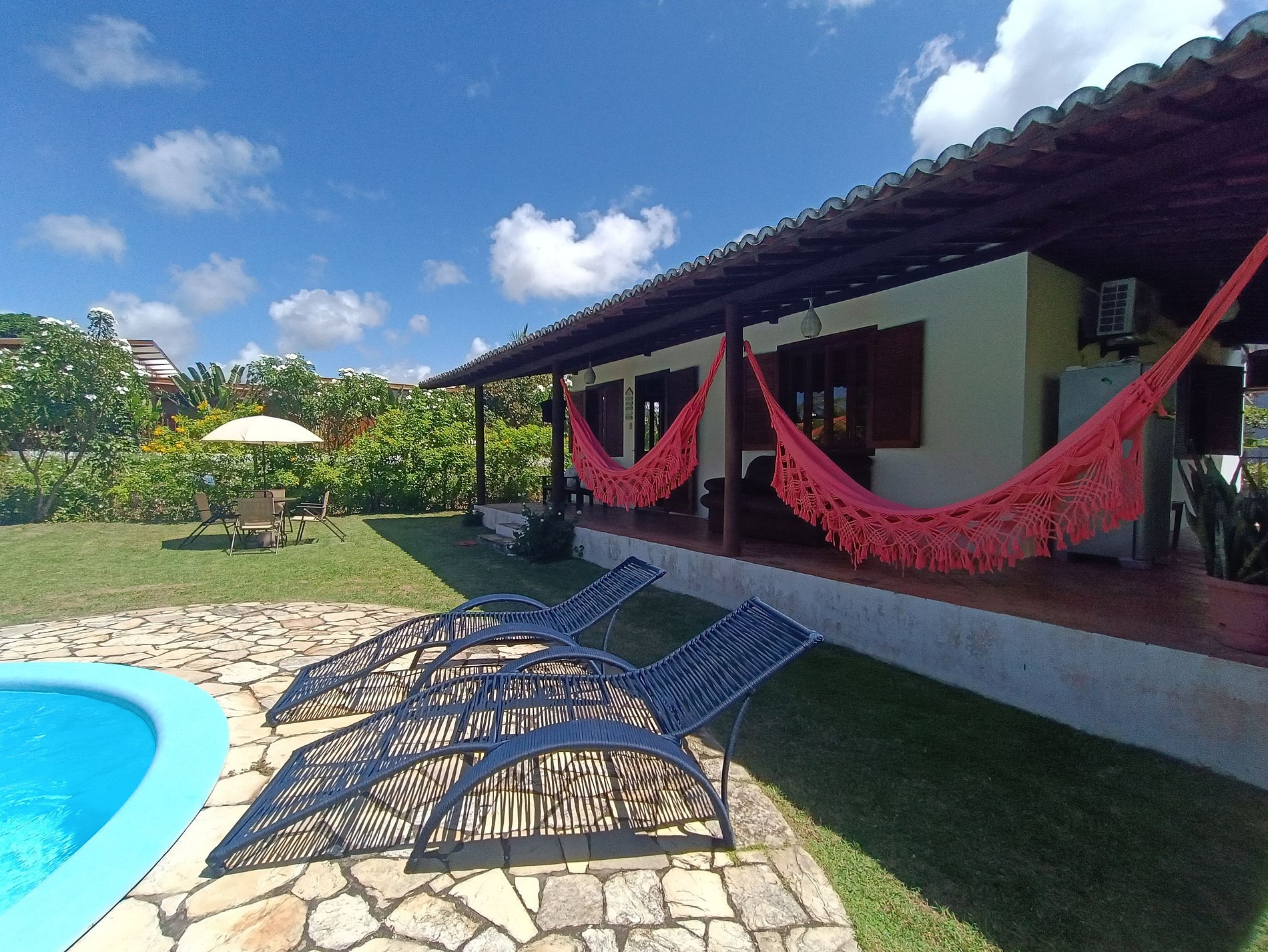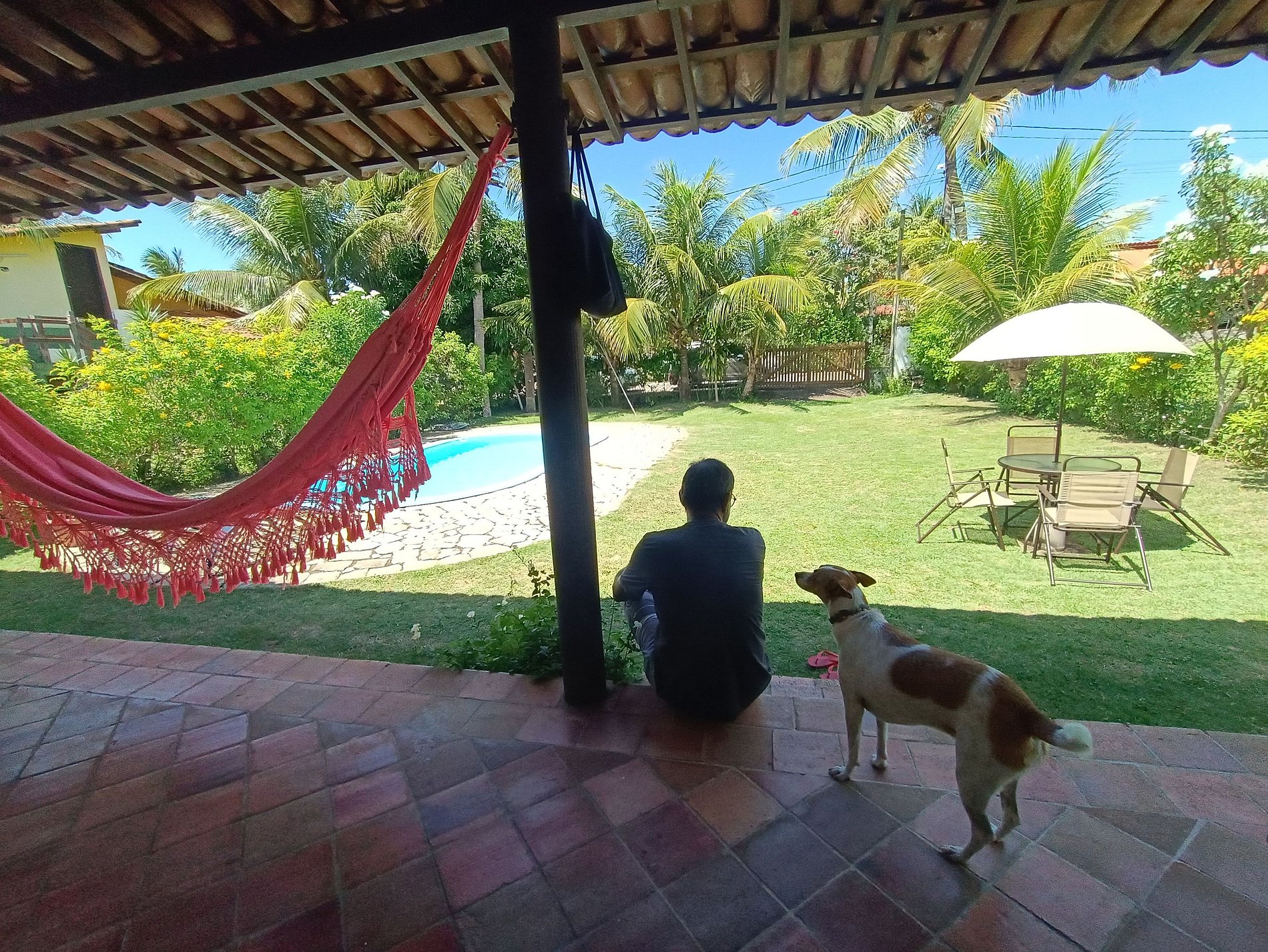A estadia foi maravilhosa. Casa ótima, quintal grande com piscina e muita área verde para contemplar. O quintal é cercado com tela, o que foi importante para nós, que viajamos com um cãozinho. O condomínio é fantástico, limpo, arborizado e seguro, com uma trilha curta na mata direto para a escadaria da Praia do Madeiro. O condomínio fica muito, mas muito perto mesmo, da rua principal de Pipa (Av. Baía dos Golfinhos), onde ficam os restaurantes e as lojas. Além disso, a anfitriã, Jaqueline, foi extremamente atenciosa conosco. Com toda essa facilidade, conseguimos aproveitar muito os dias que passamos por lá: Praia do Madeiro ou Praia da Baia dos Golfinhos pela manhã (com direito a surf, caiaque e almoço na praia), piscina no final da tarde e Av. Baía dos Golfinhos à noite. Férias excelentes!