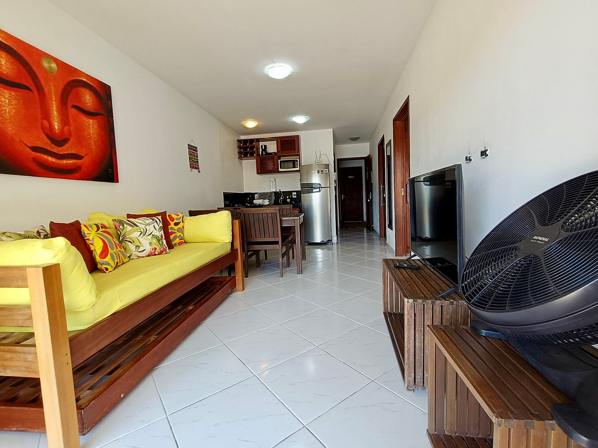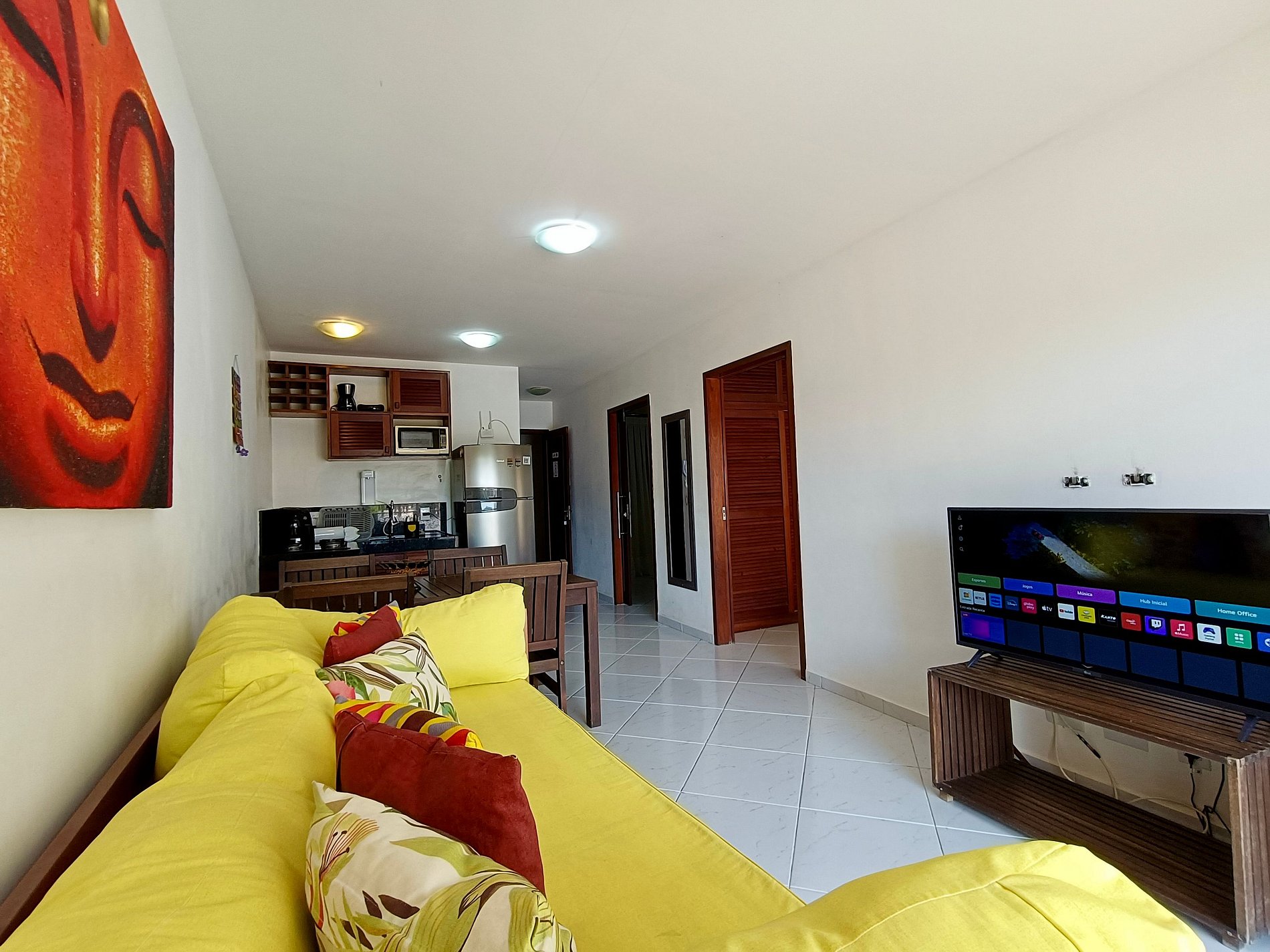 Apartamento aconchegante, com decoração jovial e funcional. Na sala sofá cama para 02 hospedes extras. Comfy apartment with nice deco, well equiped, quiet and private. Sofa bed for 02 extra guests in the living room.