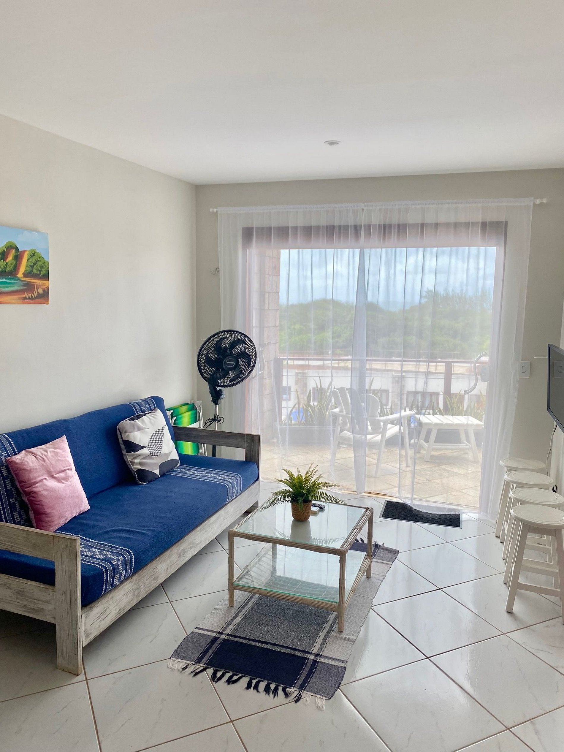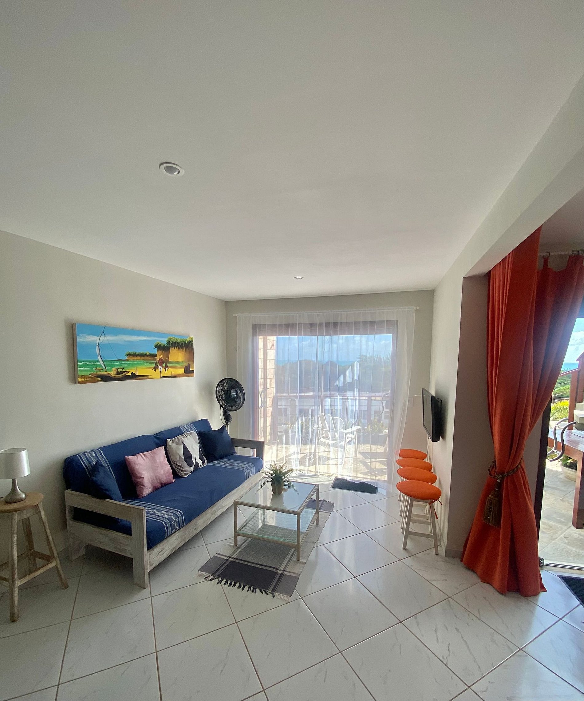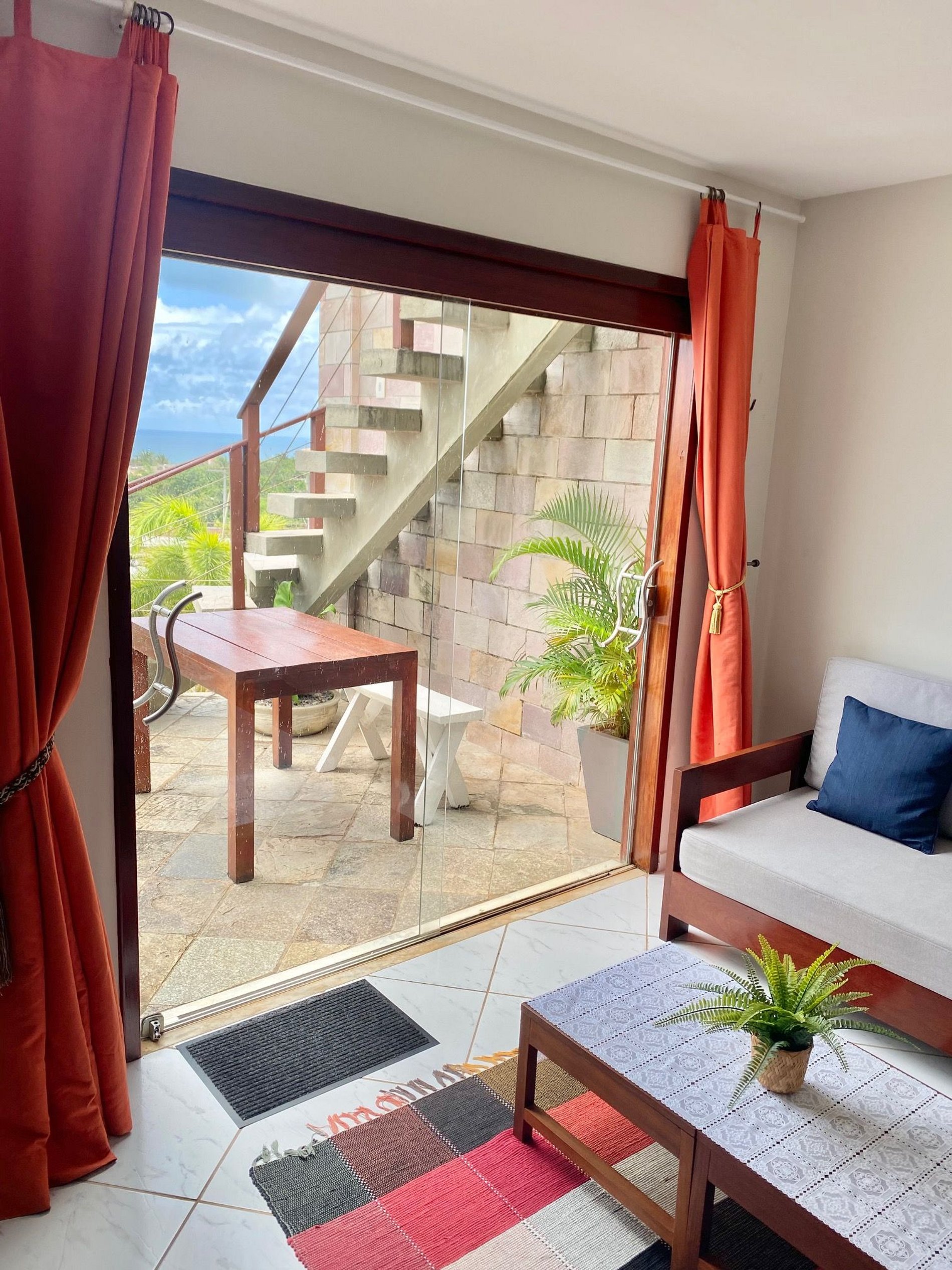 Este charmoso apartamento de 2 quartos tem um dos quartos, ambiente aberto, que pode ser separado do living por cortinas. Não havendo uso do ambiente como quarto, a sala de estar expande-se em num espaço deliciosamente amplo, arejado e com incrível vista mar.